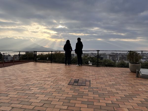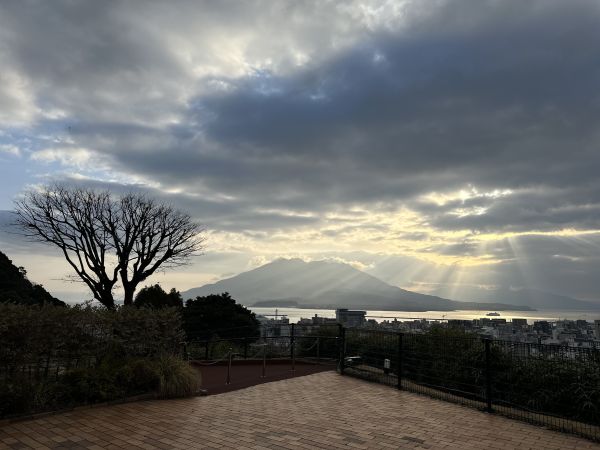 ②鹿児島を旅行した時に山の上から桜島とパパとママの写…