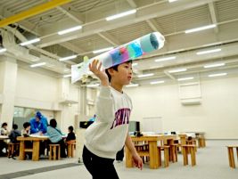 かさ袋ロケットをつくって飛ばそう! 傘を入れるビニール袋に好きな絵を描いて、自分だけのロケットを作ってみよう。 完成したら、的めがけてロケットを発射! みごと的に入ったら、空宙博オリジナルグッズをプレゼントします。