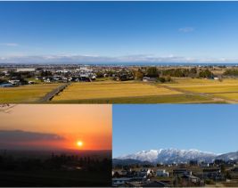 3階企画展示室1を開放して、標高約100mからの眺めを楽しめるようにしています。晴れた日は立山連峰や富山湾、能登半島に沈む夕陽、富山平野の夜景など、美しい風景を堪能できます。