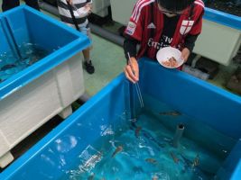 ふれあい水槽のつんつんエサやりタイム